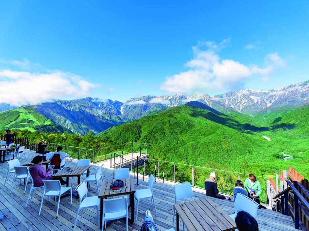 山頂テラス「HAKUBA MOUNTAIN HARBOR」は標高差 2200m を一望できる日本でも数少ない絶景ポイントのひとつです。